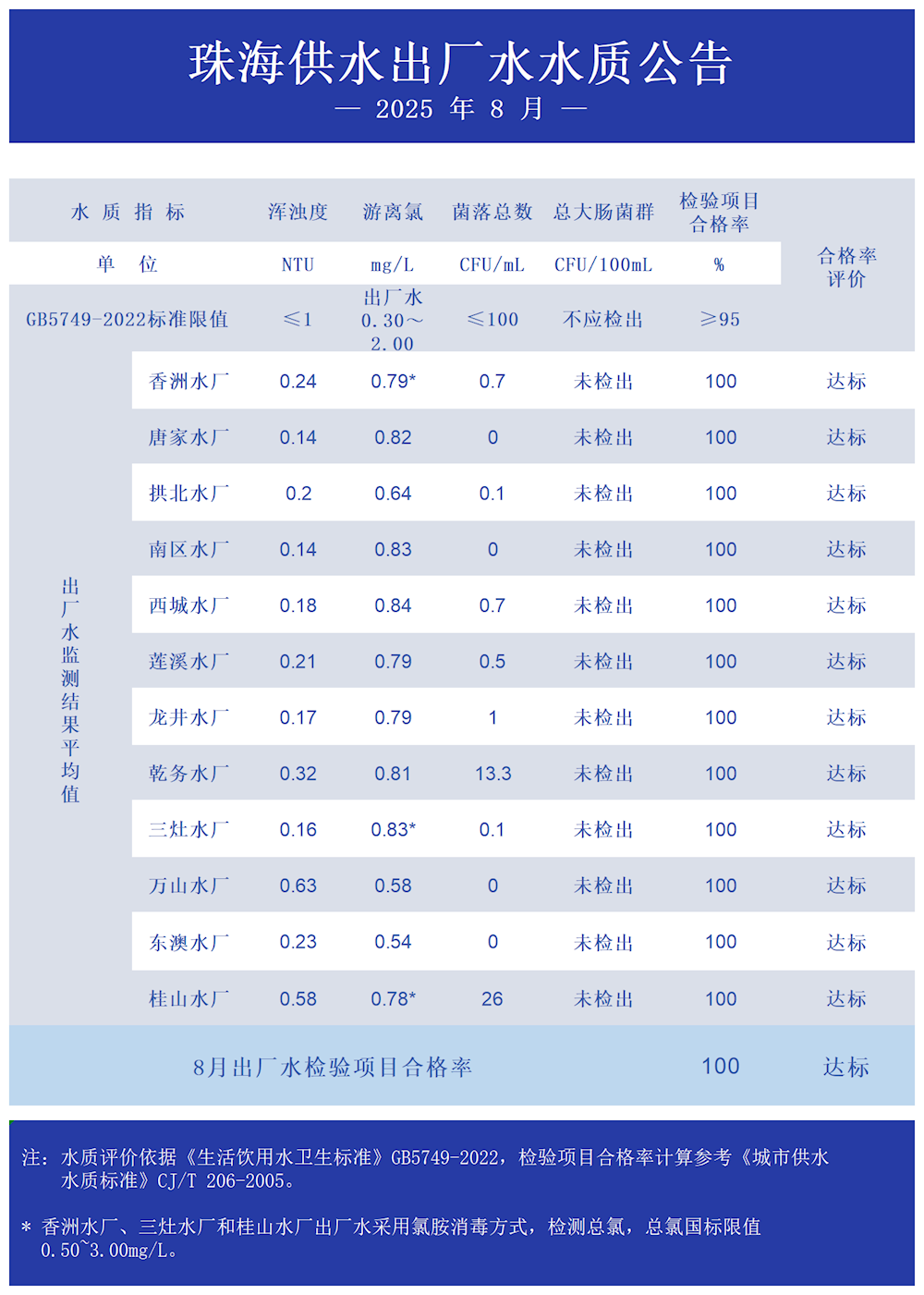 2025年8月珠海供水出廠水水質(zhì)公告.doc
